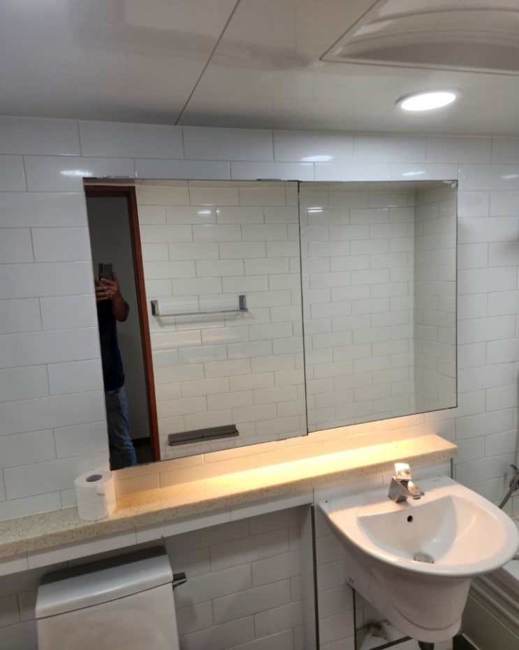 욕실거울대신 슬라이드 거울수납장설치