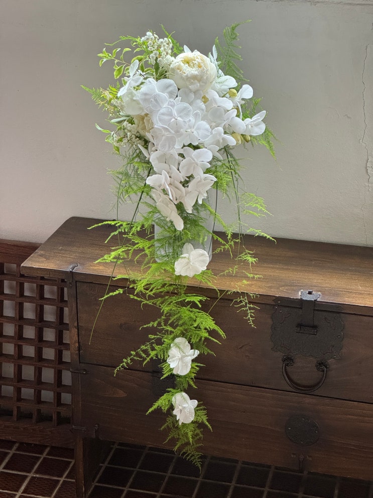 [홍대꽃집/합정꽃집/웨딩본식부케/5월의신부]서울 합정역 은촌플라워*화이트 작약 호접난 드롭부케*