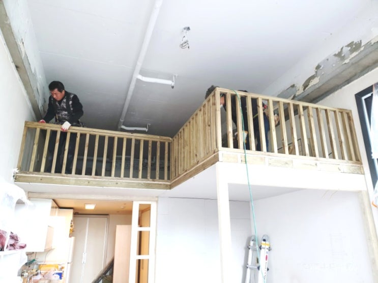4일차 리모델링 일정은 복층만들기. 저희 집은 세로로 긴집으로 천정까지 높아 휑해요. 그래서 복층확장 하...