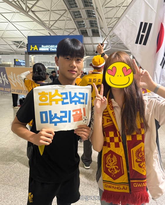 광주FC, AFC 8강전 사우디로, 인천공항 환송식, 광주fc 아이돌 강희수 선수, 조성권 정호연