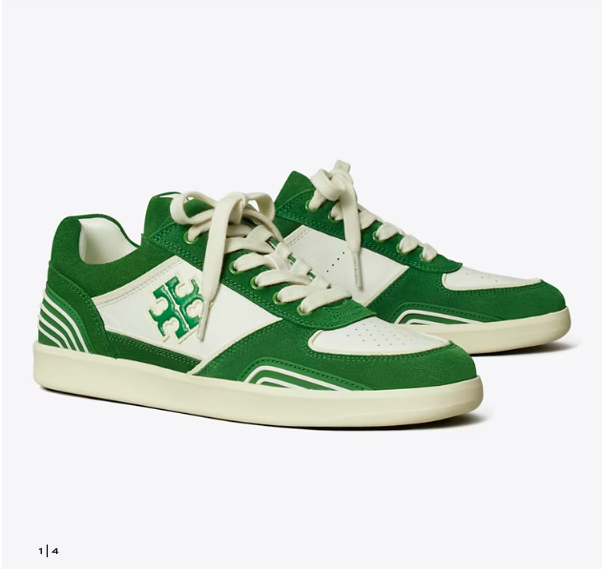 토리버치 클로버 코트 스니커 CLOVER COURT SNEAKER 화이트/모씨 그린/모씨 그린: $248 ...