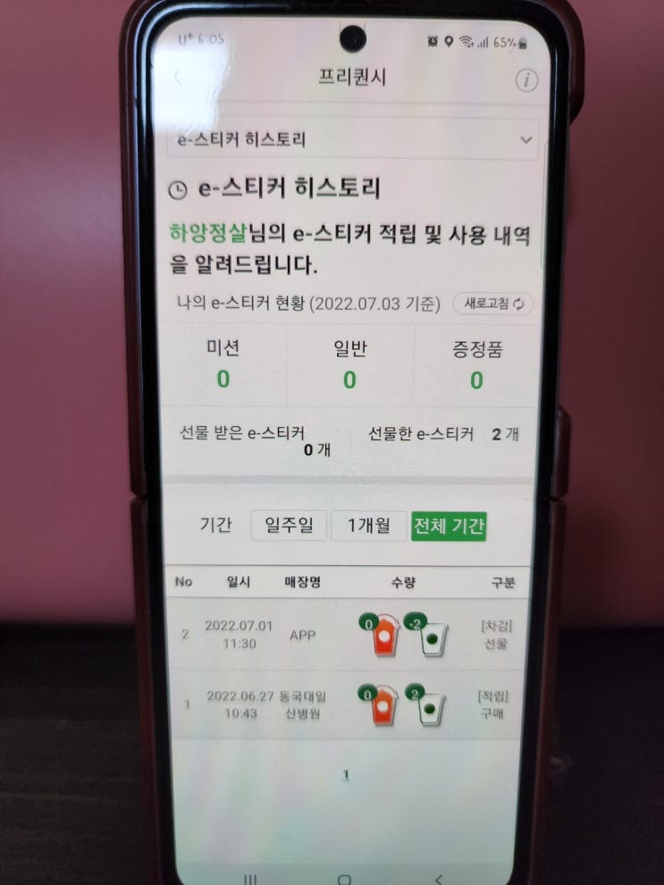 스벅 이프리퀀시 스티커 선물 : 바코드로 간편하게 보내기
