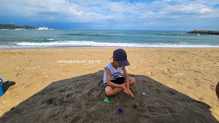 부산 아이랑 비오는날 바다 물놀이 임랑해수욕장 주차, 파라솔