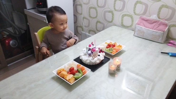 2월 생일이라 또래보다 조금 빨라요 친정부모님이 오셔서 함께 축하해주셨어요 아이스크림케익을 좋아하는 ...