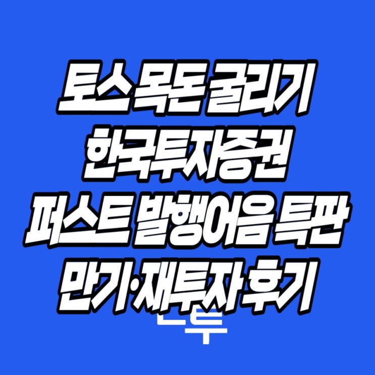 관련 글 보기 토스뱅크 목돈 굴리기를 통해서 한국투자증권 상품 중 하나인 퍼스트 발행어음 특판을 매수한...