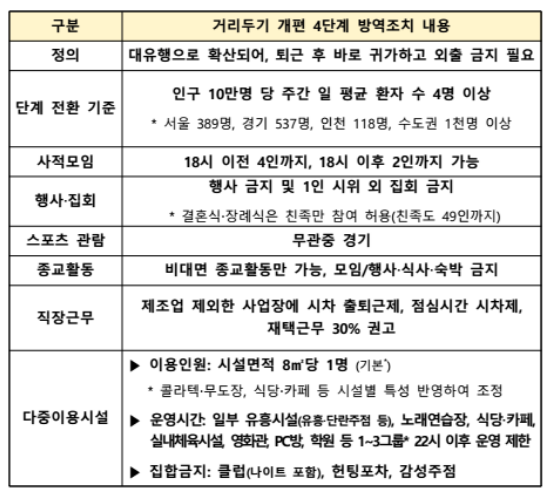 사회적 거리두기 18시 이전 4인, 18시 이후 2인까지 허용 : 4단계 요약(7.12~7.25)