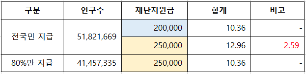 재난지원금 전국민 지급 vs 소득하위 80% 지급 : 예산이 얼마나 더 필요할까?
