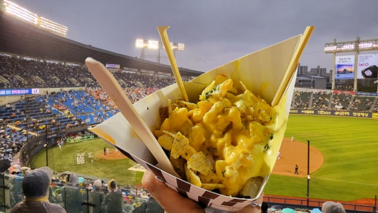 응원도 응원이지만, 먹으러온 야구장 오늘은 매번 먹었던 메뉴 말고, 새로운 맛을 위해 1루와 3루 사이 중...