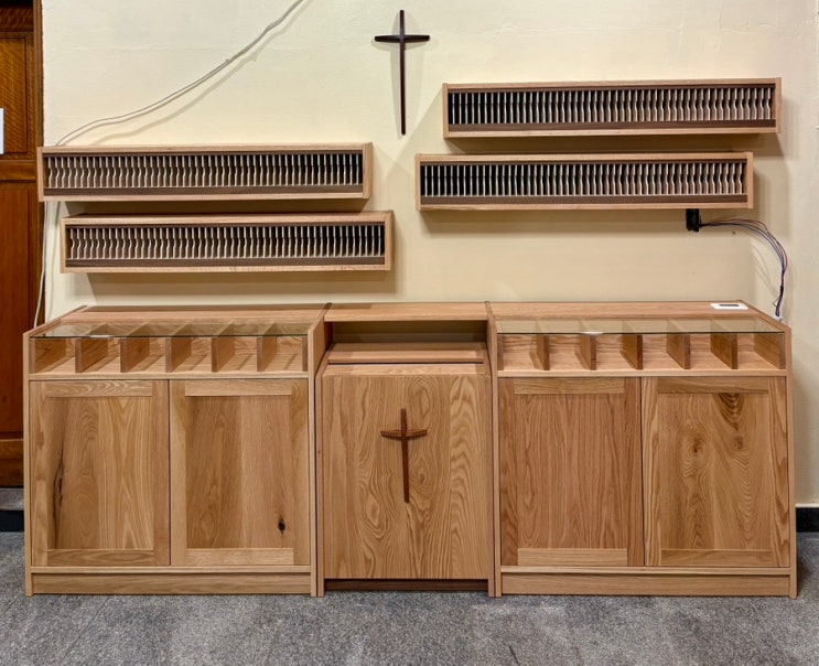 최근 제작 및 설치 진행했던 교회 가구입니다. 사진에 담겨있지 않지만 ‘ㄷ자 테이블’과 작은 봉헌함을 ...