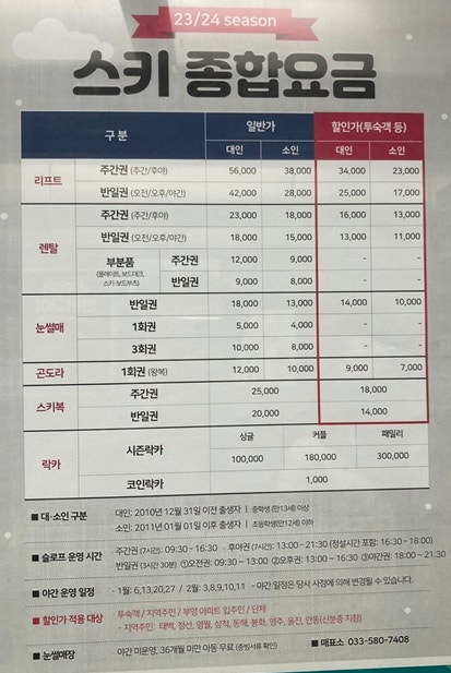 태백 오투리조트 스키장 개장 리프트권 장비렌탈권 눈썰매장 할인 팁