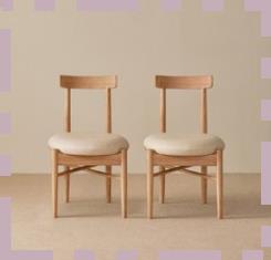 라움에스알 카페체어 볼륨체어(내추럴) 식탁의자 원목 쿠션, 2개 세트. 인체공학적 디자인.
