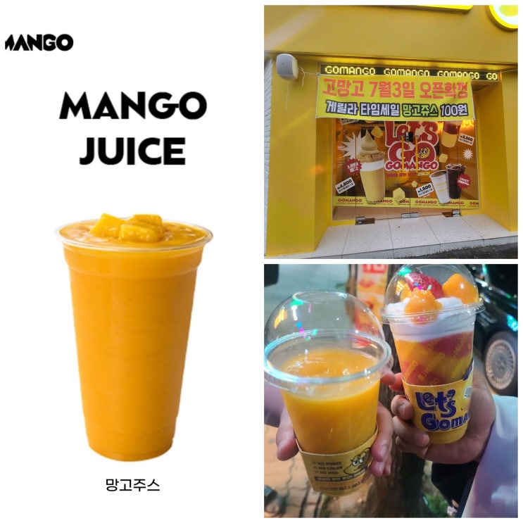 첨단 고망고 오픈 망고쥬스 100원 첨단 월계초등학교 사거리에 7월 3일 고망고 매장 오픈예정. 수선집이 있...