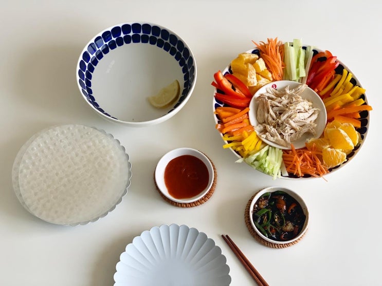 닭가슴살 월남쌈 삼계탕 먹고 남은 닭가슴살과 냉장고에 가득한 채소들을 활용하여 월남쌈을 만들어 봤어요...