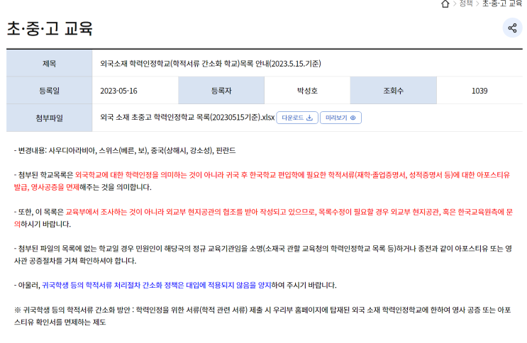 두 아이가 얼마뒤 국내로 귀국후 국내학교로 전입해야 해서 관련 서류들 및 내용을 확인중에 있습니다. 아...