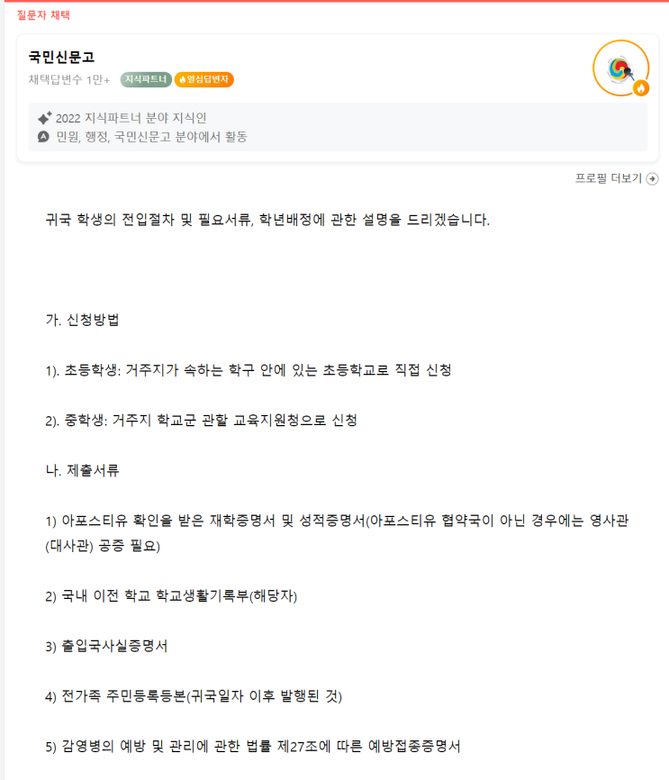 귀국학생 전입절차 및 학년배정