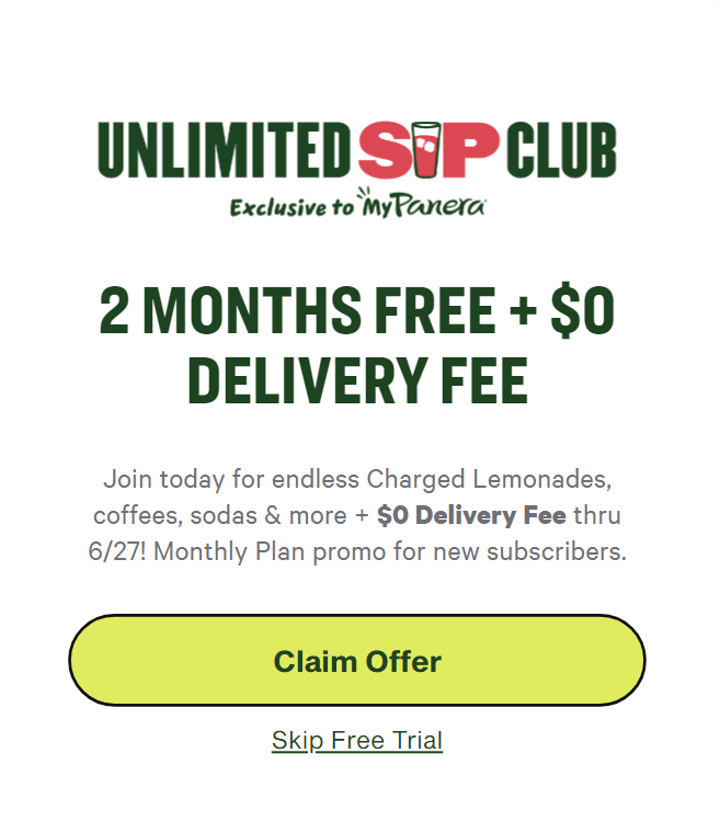 미국 파네라 2달 공짜 음료 무제한