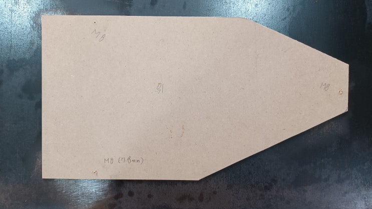 헤그너 스크롤쏘 바닥을 MDF를 대고 팬으로 그린 후 톱질. 나사구멍 3개 표시(M8에 35mm) 원래 이 철판...