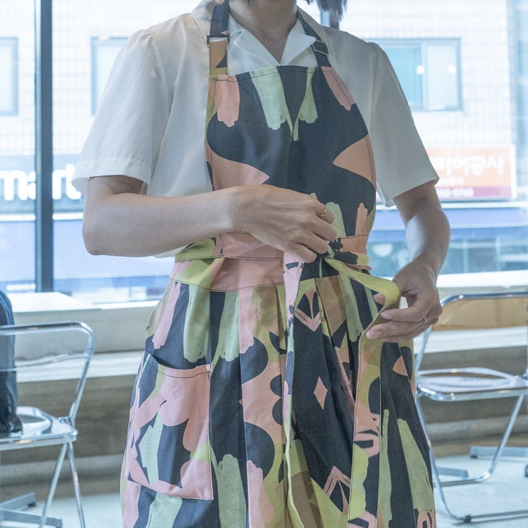 주방앞치마 패턴이 예쁜 마메코 프리미엄 원피스앞치마