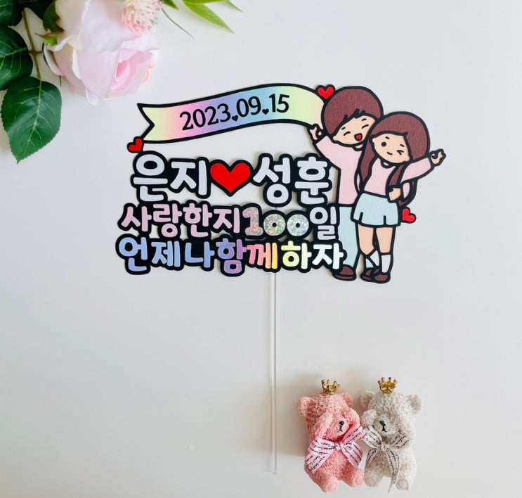 1주년토퍼 100일 1000일 커플 남친 이벤트 결혼기념일 생일 케이크 자유문구 *종이 색상은 모니터 해상도에...