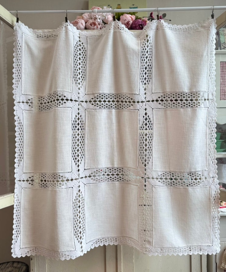 유럽빈티지 크로쉐레이스 린넨 테이블보~~ 대마 린넨소재와 뜨개레이스 아름다운 테이블보^^ 크기 약 106*1...