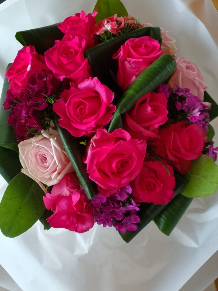 2019.4.23. 꽃 수업 노무라 고사리 : 살짝 길게, 눕혀서 사선 더글라스 : 그린 작업 장미 : 중앙, 살짝 왼...