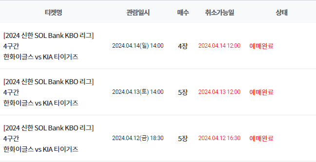 2024 KBO 기아 vs 한화 4/12-4/14 3연전 티켓팅 성공 후기! + 티켓팅 꿀팁 대방출