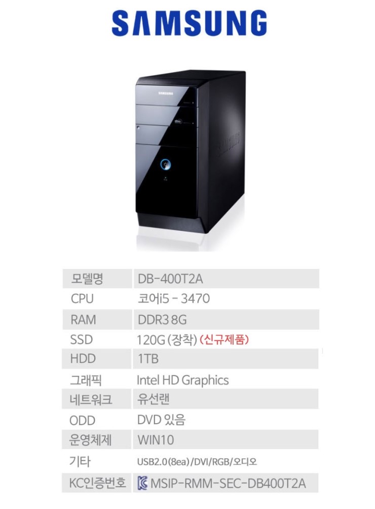 중고 삼성 pc DB400T2A(코어i5 3세대3470/8G/SSD120G+1TG/WIN10)