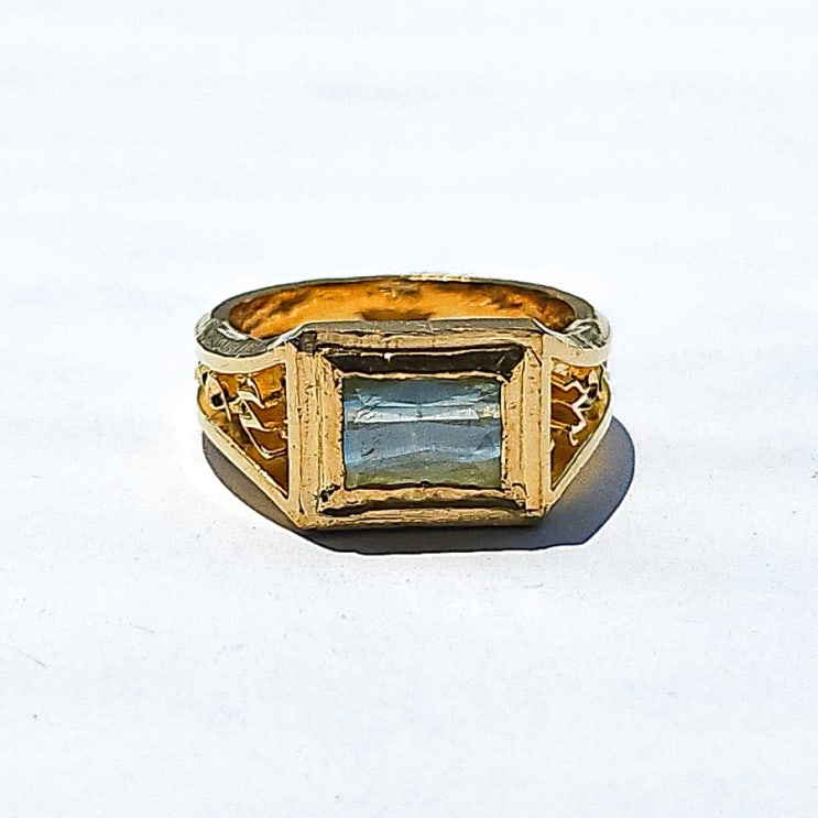 안녕하세요 ~! 24k 순금 소재로 반지를 제작했습니다 아쿠아마린 천연석을 세팅했어요!! 퀄리티가 좋은 천...