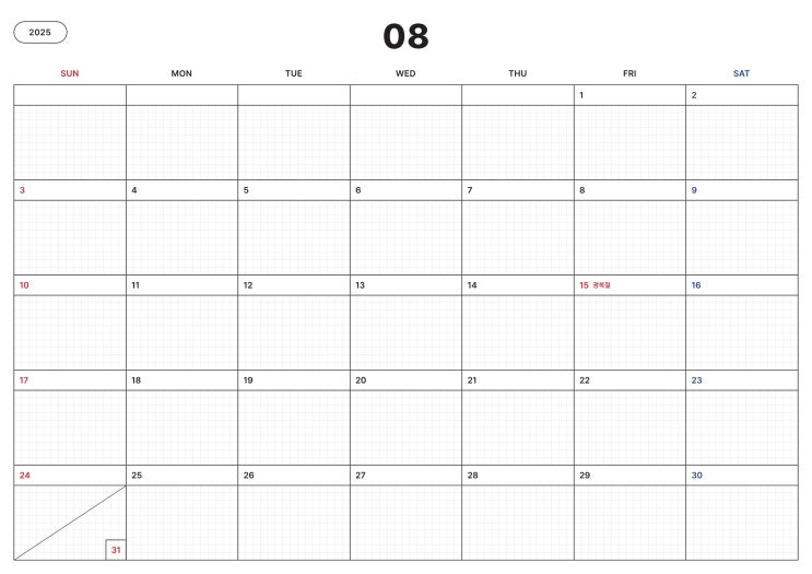 2025년 8월 달력 무료 공유 심플, 일러스트 버전