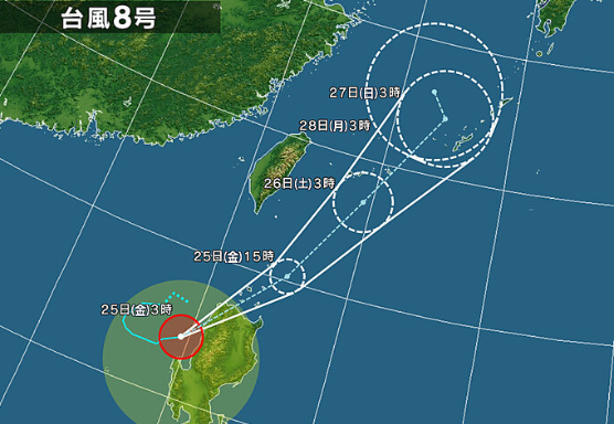 오키나와: 이번주 내내 비가 옴. 7호 와 8호 태풍이 소멸 하며 남은 잔재들이 오키나와 주변에 있어 오키나...