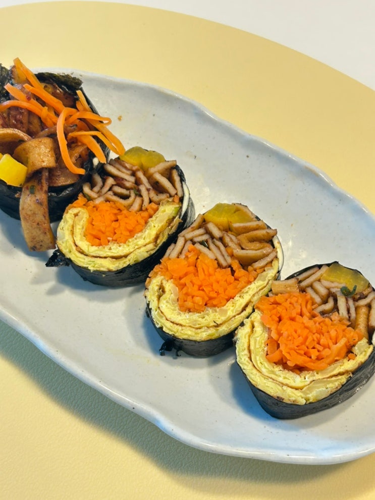 매운 어묵 양배추계란 김밥 *어묵 가볍게 데치기 (생략가능) 어묵 양념 : 다진마늘 1 고춧가루 1 액젓 1 양...