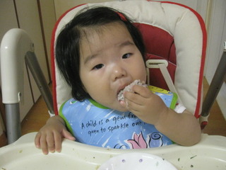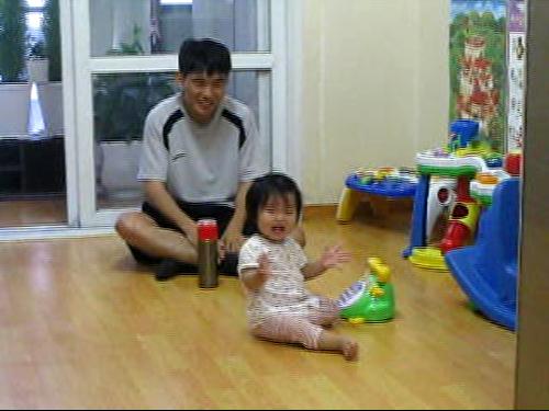 아침에 빨간색 잠바를 입으며 "이거 할머니가 사줬지....할머니 곤다(고맙습니다)"   까만 운동화를 ...