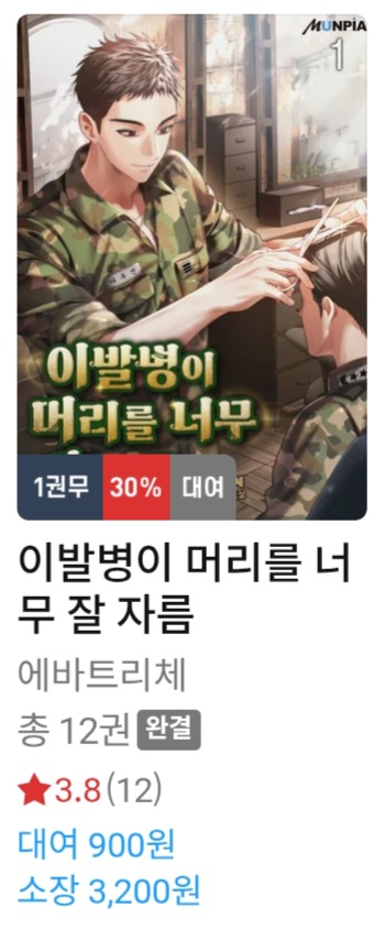 현대판타지 장편소설 '이발병이 머리를 너무 잘 자름'이 리디북스에서 30퍼센트 기간한정대여 이...