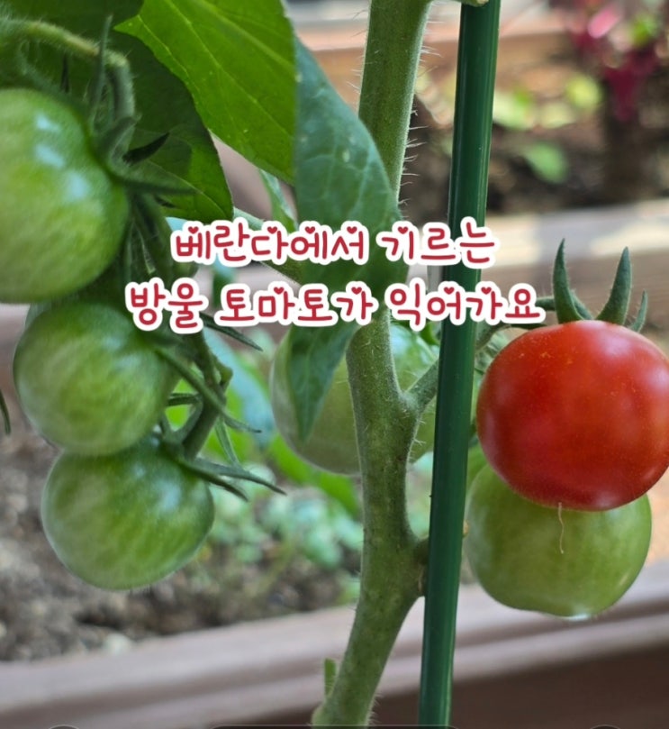 베란다에서 기르는 토마토가 이제 빨갛게 익었어요 베란다 특성상 햇빛의 양이 적기 때문에 일반 토마토보...