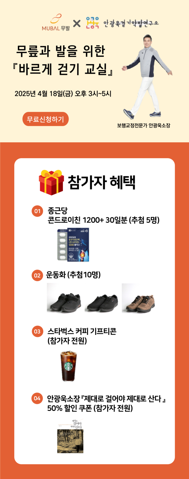 무릎과 발을 위한 제2회 『바르게 걷기 교실』 무료 참가 신청 안내 - 무발 x 안광욱 걷기약발연구소 두번째 콜라보