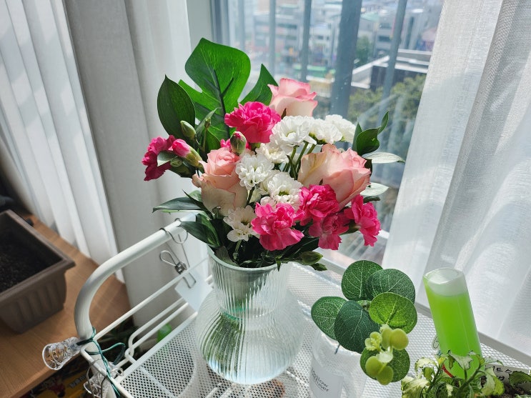 꾸까 꽃 구독으로 받아본 꽃다발 예쁘게 화병에 꽃꽂이