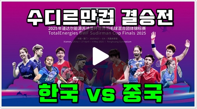 수디르만컵 2025 결승 중계 안세영 경기 시간 한국 중국 배드민턴 결승전 8년만에 정상탈환을 목표로 수디...