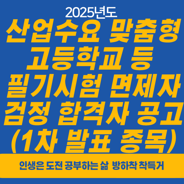 2025년도 산업수요 맞춤형 고교 및 특성화고 필기시험 면제자 검정 최종합격자(1차 발표 종목) 공고