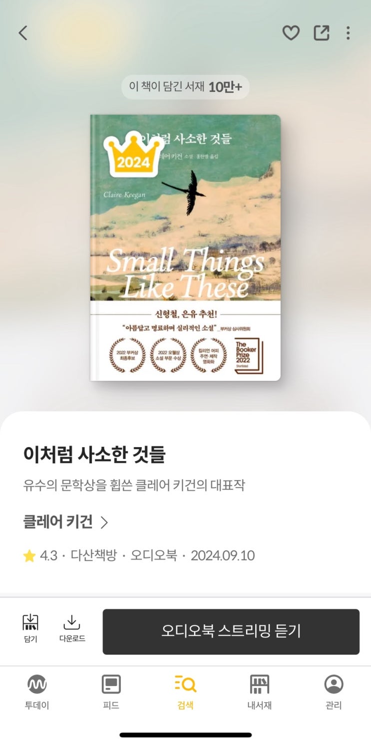 오늘 읽은 책 [이처럼 사소한 것들] (2023 · 클레어 키건) 어제 영화를 보고 나서 재독 https://pedia.watc...