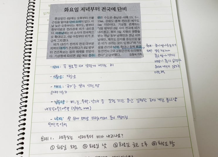 [초등 신문 읽기] 매일경제 날씨 - 화요일 저녁부터 전국에 단비