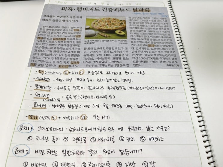 [초등 신문 읽기] 매일경제 - 피자. 햄버거도 건강메뉴로 탈바꿈