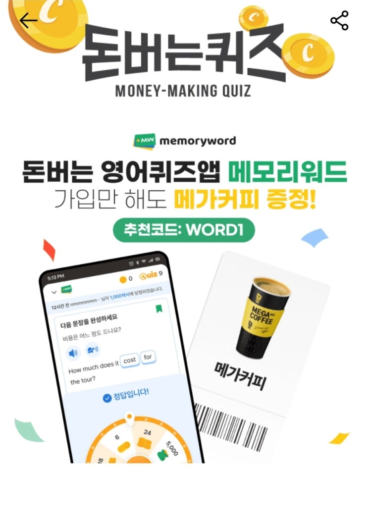 캐시워크 돈버는퀴즈 메모리워드