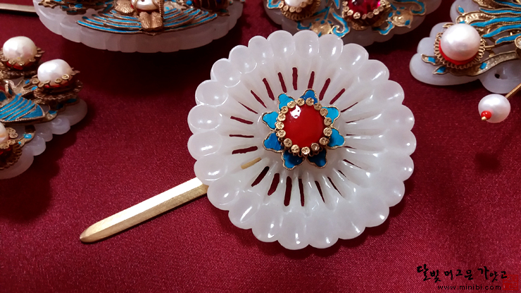 연원비 # 백옥 국화 앞꽂이(영친왕비 앞꽂이 재현품, 홍란장옥반자, 민반자)