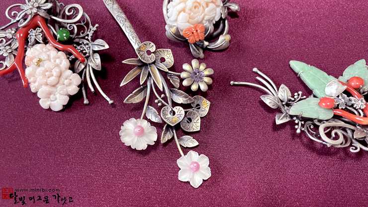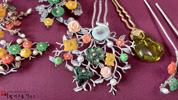 연원비 # 천연 원석 뒤꽂이(비취 산호 호박 자수정 한복 뒤꽂이)