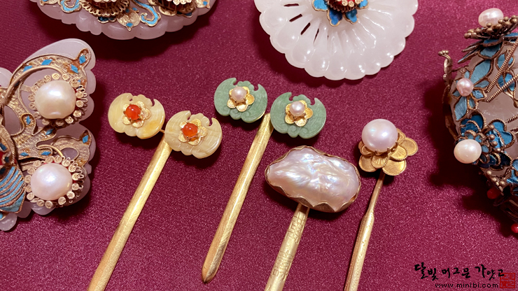 수묵화 위에 분홍 매화 살포시, 천연 산호 뒤꽂이 뒤꽂이함에 비슷한 산호 뒤꽂이들이 많아서 이놈이 저놈...