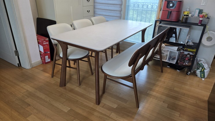 찌는 듯한 무더위를 뚫고 현대성우 아파트 고객님 댁에 원목으로 만든 6인용 세라믹 식탁 세트를 배송해 드...