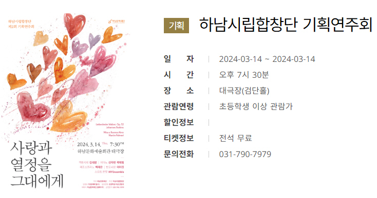 2024년 3월 14일 오후 7시 30분. 하남문화예술회관에서 공연되는 '사랑과 열정을 그대에게' 하남...