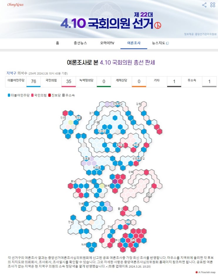 4.10 22대 국회의원 선거 여론조사 총선 판세 선거구별 검색