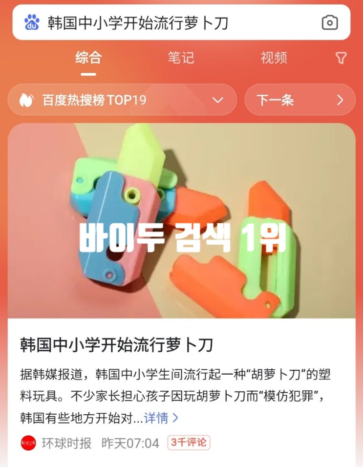 중국사이트 실시간 1위 초중생 '당근칼' 유행