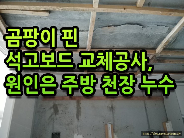 곰팡이 핀 석고보드 교체, 원인은 주방 천장 누수 by 곰팡이잡는사람들